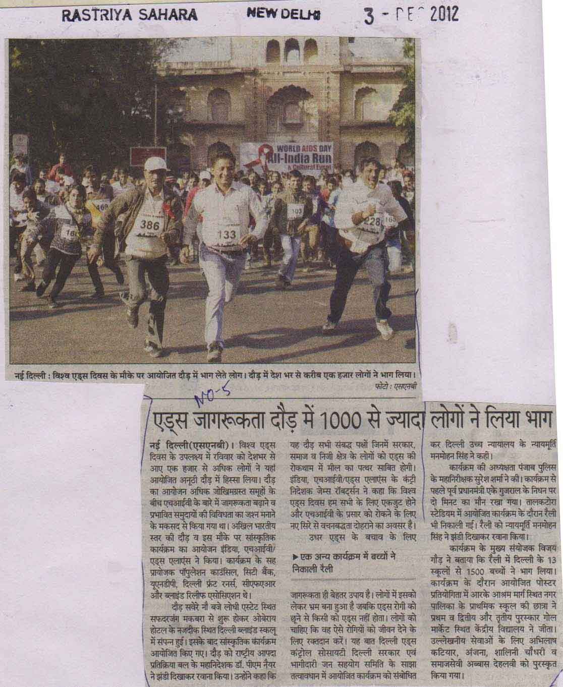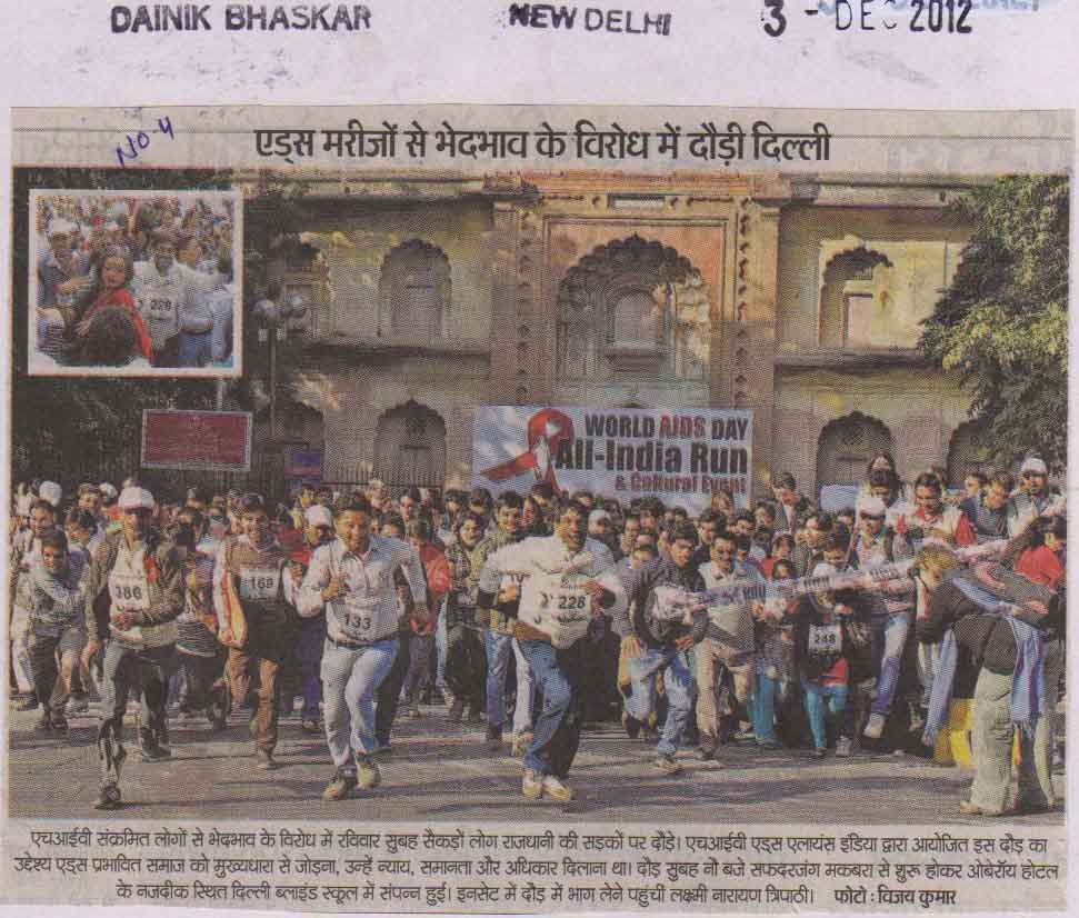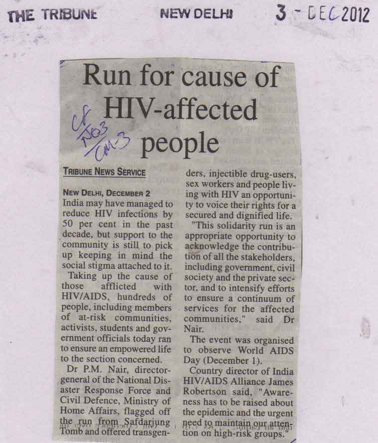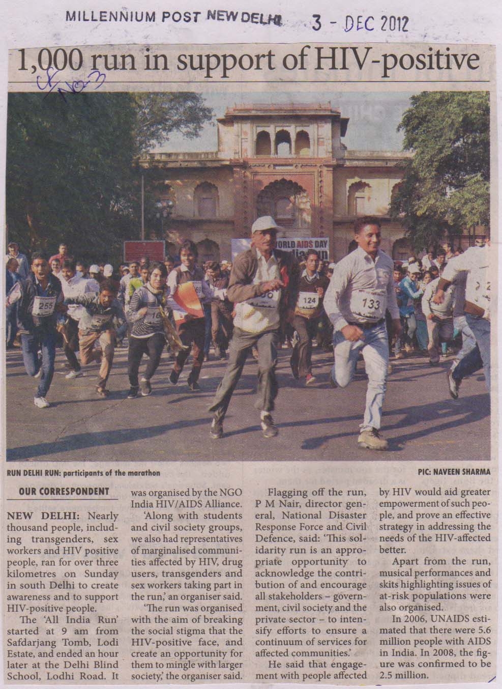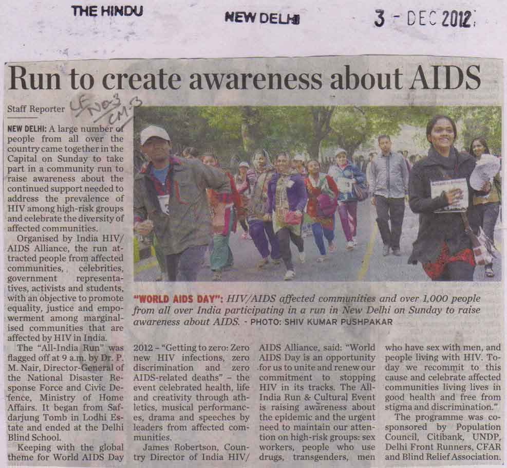 Press Clippings: World AIDS Day All-India Run & Cultural Event Media Coverage (December 2012)